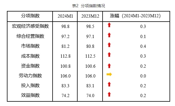 中国中小企业协会今天(14日)发布,1月中国中小企业发展指数为89.2,比上个月上升0.2点,高于2023年同期。各分项指数和分行业指数也是涨多跌少。